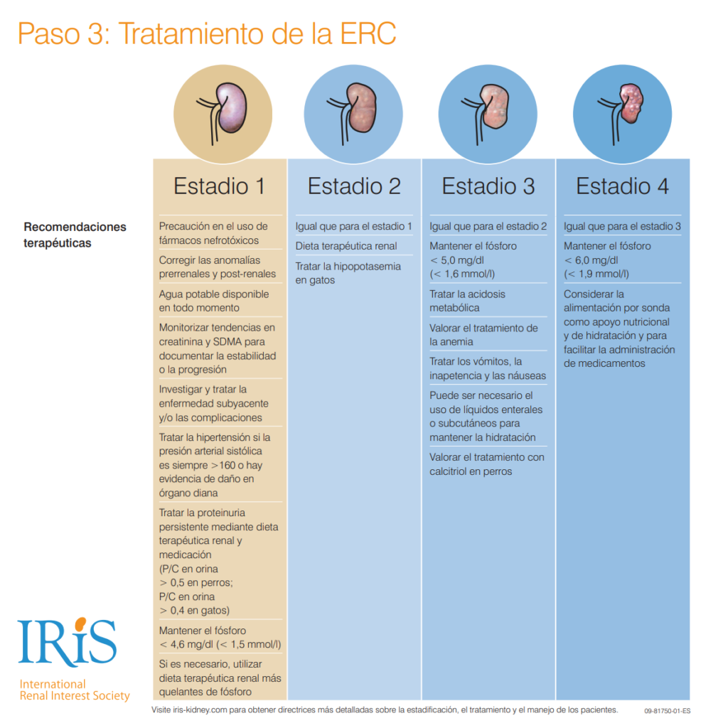 - Estadios 3 y 4: En estadios más avanzados, además de la dieta, pueden requerirse medicamentos para controlar la hipertensión, la proteinuria y las complicaciones como la anemia y el desbalance de electrolitos. La terapia con fluidos, ya sea subcutánea u hospitalaria, se vuelve más crítica.